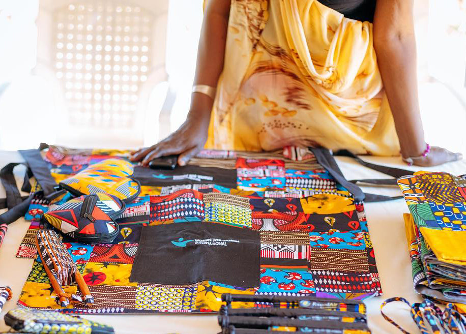 Functional and eye-catching, these bold fabric aprons turn a kitchen essential into a piece of art! 100% handmade with a mosaic of cotton African prints, plus adjustable straps and pockets for your convenience. This beautiful apron makes a lovely gift to people who love cooking and supporting women survivors of war to reclaim their power.